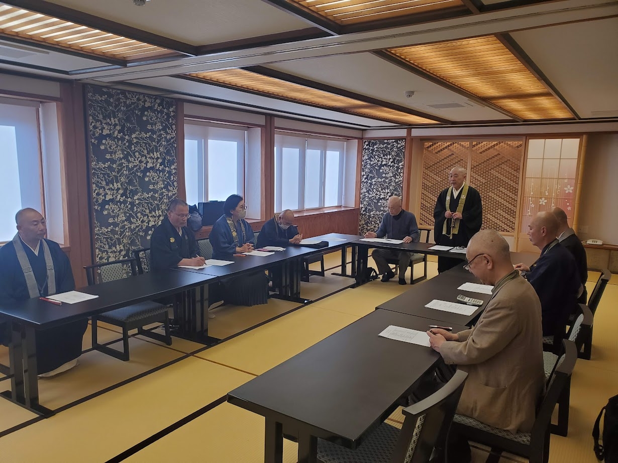 2期6年間支所長を務められ、この3月をもって退任されました天尾隆心僧正よりご挨拶があり、令和6年度事業報告ならびに決算報告が承認されたのち旧役員は退室。